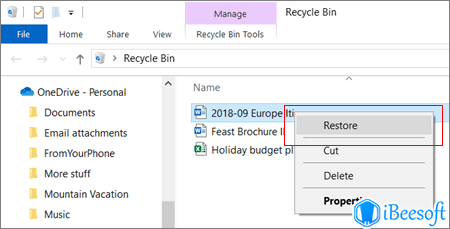 Open the recycle bin from the desktop or start menu and then locate the deleted files you are interested in.